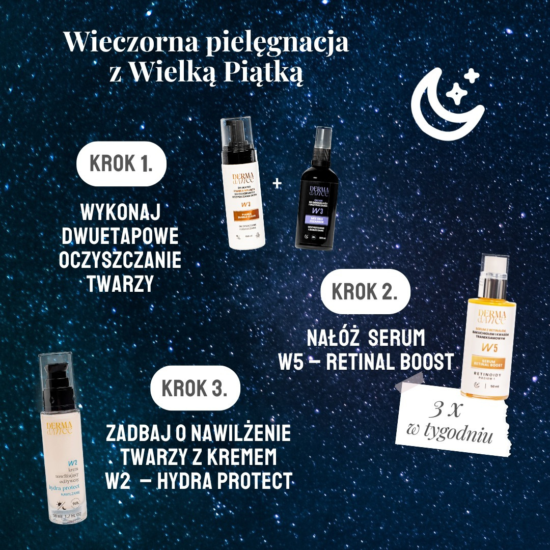 Twoja codzienna tarcza nawilżenia – teraz w wersji mini. W2 – Hydra Protect to odżywczo-nawilżający krem o bogatym składzie, który może być stosowany zarówno na noc, jak i na dzień. Nawilżanie, wzmacnianie i ochrona bariery hydrolipidowej to jeden z najważniejszych elementów pielęgnacji, w koncepcji Wielkiej Piątki Kobiety kontra czas oznaczony jako element W2. Wielka Piątka jest systemem uwzględniającym 5 elementów codziennej pielęgnacji, który został opracowany przez dermatologa i specjalistę medycyny estetycznej dr n. med. Aleksandrę Żerdzińską, aby zaspokoić wszystkie potrzeby skóry.
